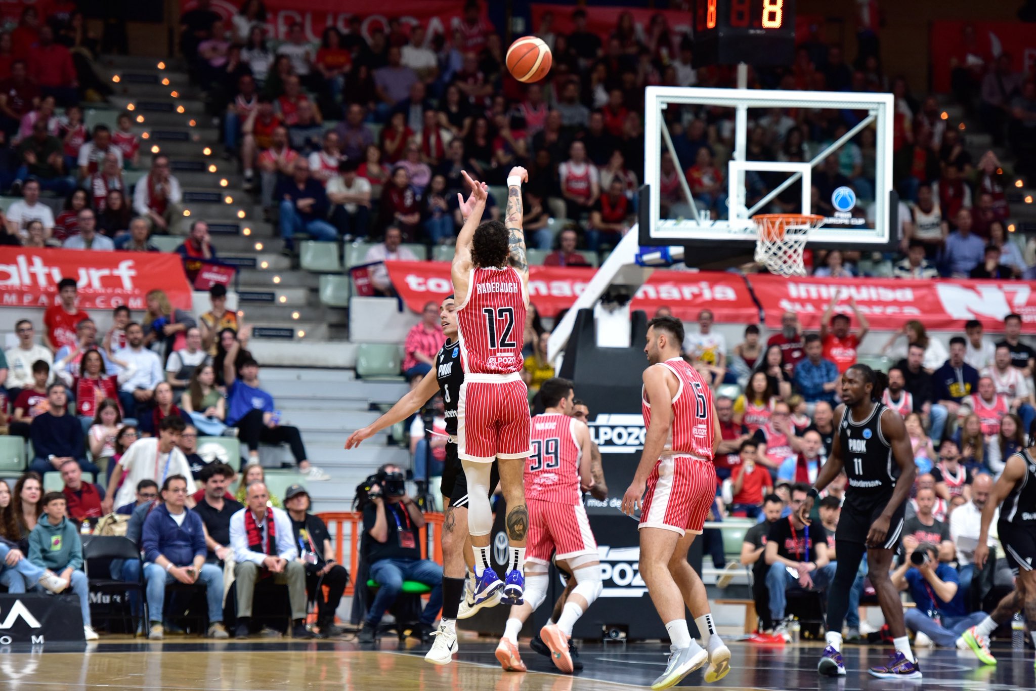 Más de 6.000 aficionados llenaron las gradas del Palacio en una noche de ambiente europeo. La afición murciana volvió a demostrar su compromiso con el equipo en una cita histórica, empujando desde el inicio en busca de una remontada que finalmente no pudo culminarse.